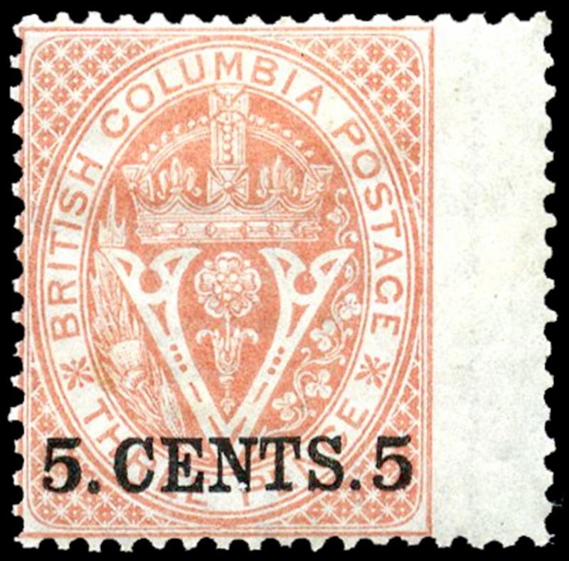 9: 5 CENTS 5, on 3d bright red, perf 14, mint og, hr, right wing margin, just into at left, fine. 2017 Greene Cert (Image)