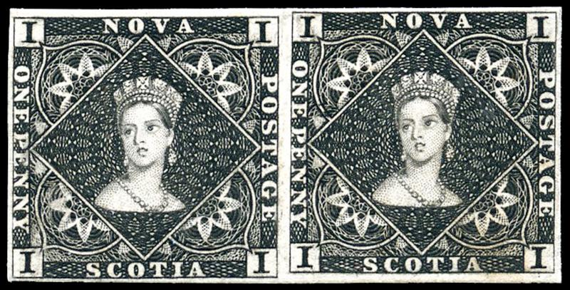 1P: ONE PENNY, BLACK, PLATE PROOF PAIR on card, fine (Image)