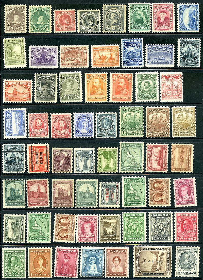 1/270,etc: Collection of over 270 mint and used, including Pence, first Cents with 5¢ brown unused and 5¢ black Harp Seal, earlier mixed quality, many no gum or regummed, mint 1897 Discovery cpl, Guy including engrave cpl used, complete mint 1911 on, Airs with mint C3b, still much is f-vf. Inspect. (Image)
