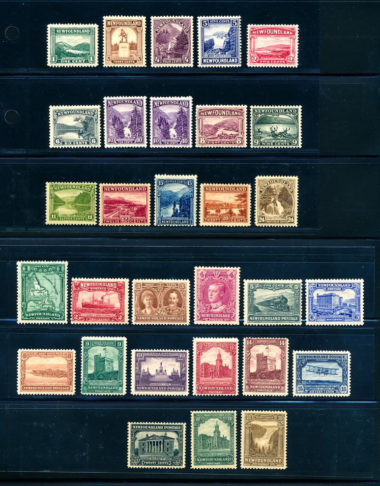 NEWFOUNDLAND 1923-1928 SELECTION STAMPS F-VF */**. Selection of 2 complete set containing 29 mints never hinged stamps excepted numbers 133-34, 139, 139b, 141 and 143 hinged. Unitrade $530.00. (Image1)