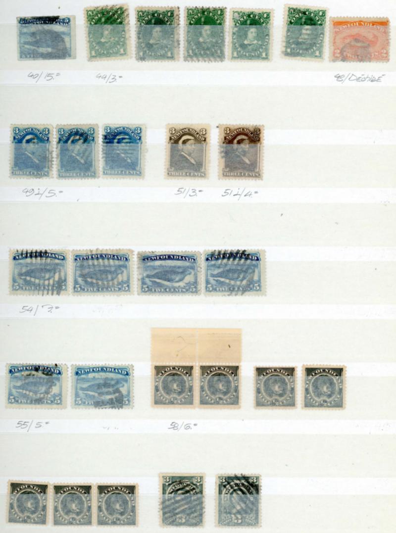 NEWFOUNDLAND LOT STAMPS F-VF */O. Stockbook containing 609 stamps mint and used (identified with Scott numbers). Need to be checked. Some large duplication. Owner's catalog value, Unitrade $775.00. (Image1)