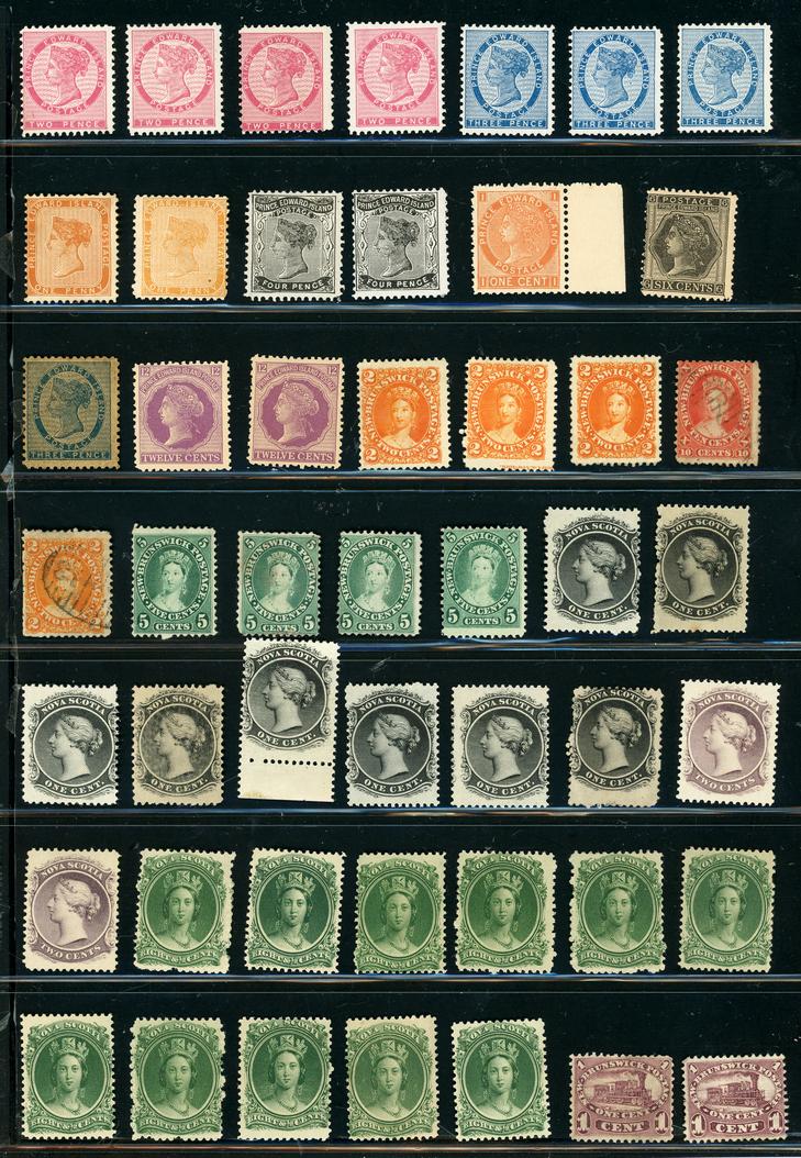 CANADA PROVINCES LOT STAMPS F-VF */**/O. New Brunswick, Nova Scotia, Prince Edward Island and Newfoundland, lot of 84 mint stamps. You must examine. Unitrade $1275.00. (Image1)