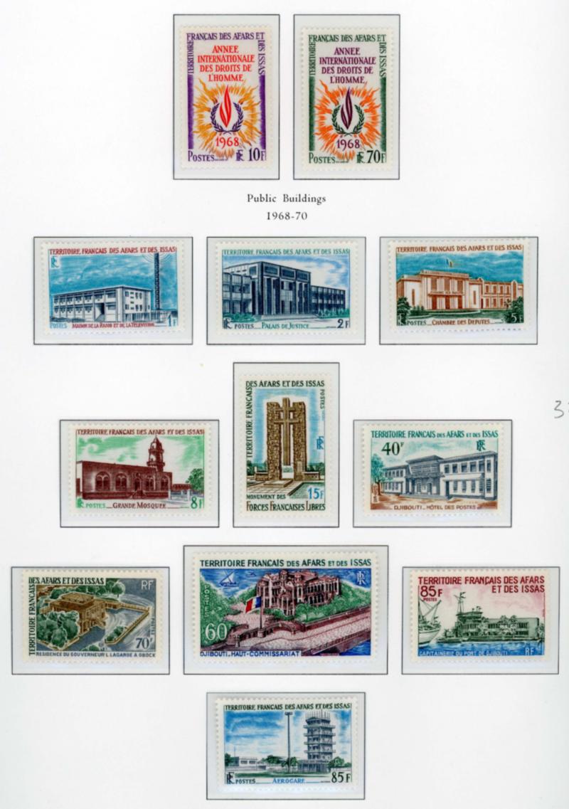 AFARS & ISSAS 1967-77 COLLECTION STAMPS VF **. Complete and nice collection of 177 stamps mint never hinged mounted on Palau album pages. Scott $1170.00 CAD. (Image1)