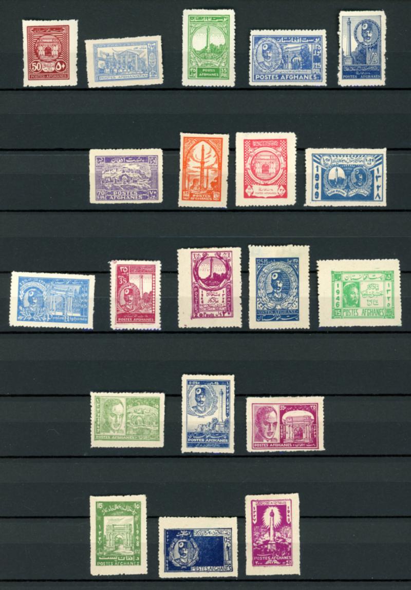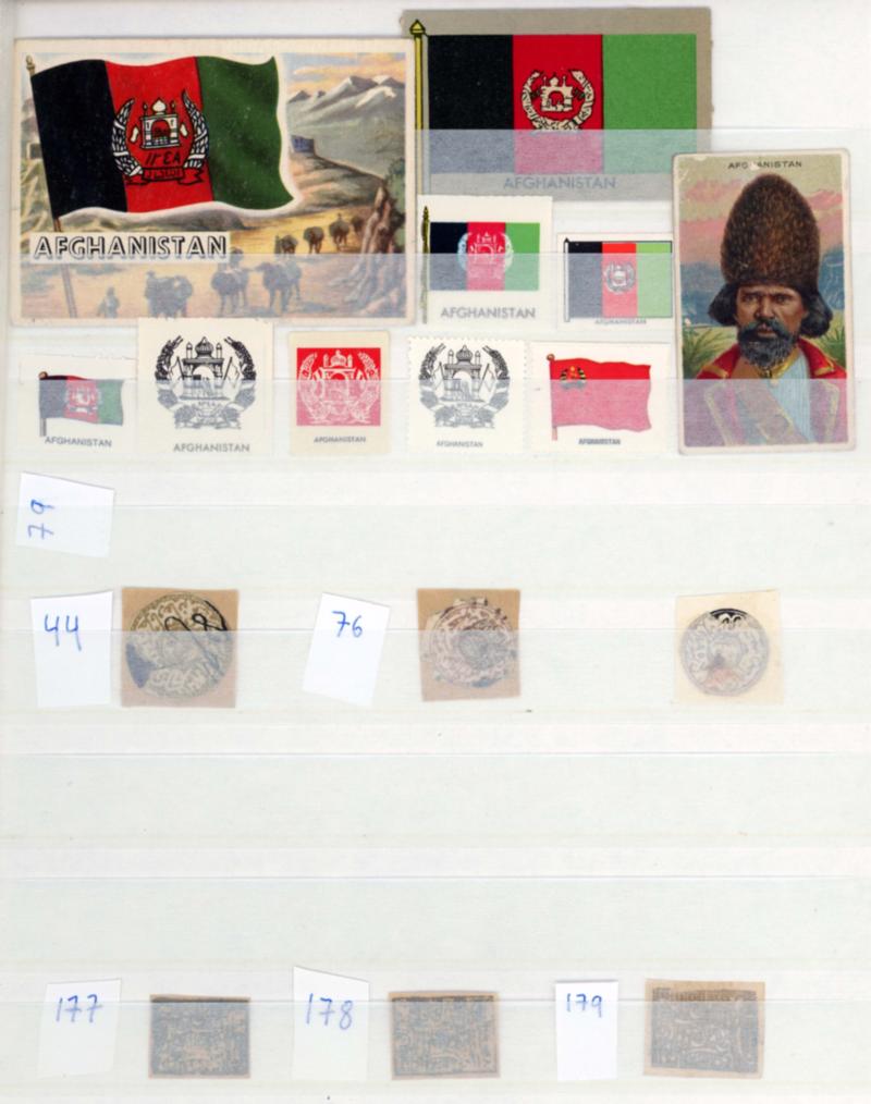 AFGHANISTAN 1876-1998 COLLECTION STAMPS F-VF */**/O. Interesting collection of 1283 stamps and souvenir sheets mint and used, displayed in 3 stockbook with some Scott numbers for classification. Some good stuff including a spectacular selection of 22 stamps from the numbers 180 to 188A (Mi. #156-61, $150) with many different shades and many on pieces. Worth to be examined. Starting bid $180.00. (Image1)