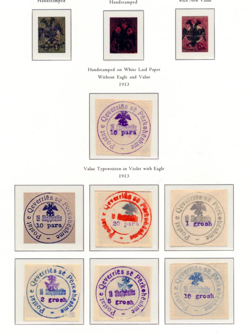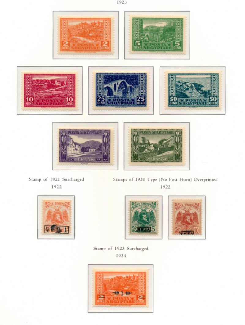 ALBANIA 1913-21 COLLECTION STAMPS F-VF */**/O. Binder containing a nice collection of 90 mint and canceled stamps. I noted #20(*), 21-26(*), 27-33(*), 34-40*, 41-46/o, 47-52**, 52A-53(*), 54-61/o, 62-68/o, 91-97/o (without 94), 98-104** (without 102), 105**, 106-12**, 121-22**, 124**, 125-28**, 135-40/o/*. Need to be examined. Scott $2050.00 CAD. (Image1)