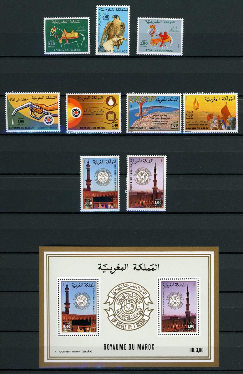 ALGERIA + MOROCCO LOT STAMPS F-VF */**/O. Three stockbooks containing 1256 stamps and 13 souvenir sheets, mint and used. Contains also few stamps from Comoro islands. Need to be examined. Starting bid $150.00. (Image1)