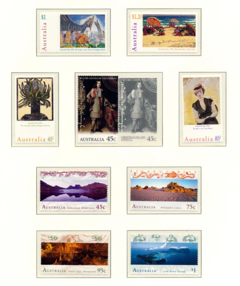AUSTRALIA 1996-2002 YEARBOOKS COLLECTIONS STAMPS VF ** Lot of 7 Yearbooks complete with stamps. souvenir sheets and mini sheets mint never hinged. Total face value is $359.10 AUD (333.00$ CAD). Starting bid $120.00. (Image1)
