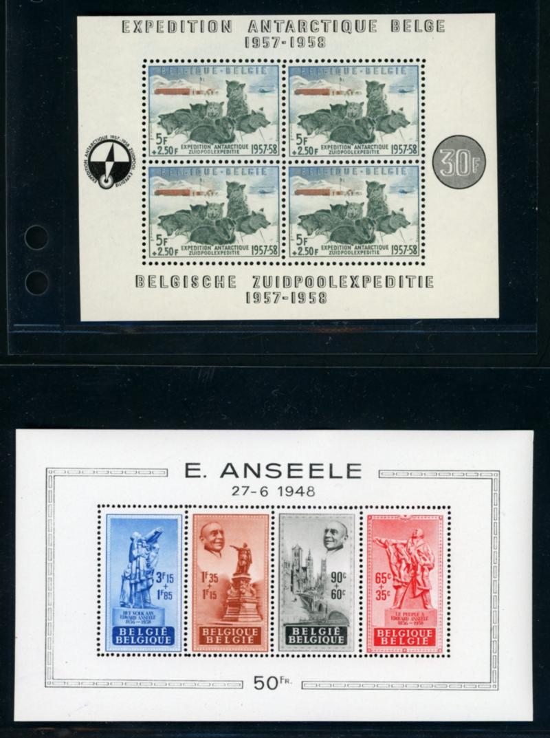 BELGIUM 1948-57 #B458a+B605a S/S's XF ** Edouard Anseele S/S and Belgian Antarctic Expedition S/S. The 2 souvenir sheets are mint never hinged in superb condition. Scott $525.00 CAD. (Image1)