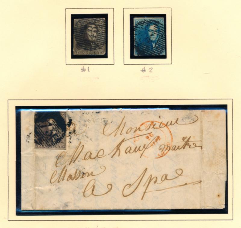 BELGIUM 1927-55 COLLECTION STAMPS COVERS VF */**/O. Album containing a nice and interesting collection of 268 stamps, 17 covers and 4 postcards. I noted #1-2/o, 1 on cover, 7 on cover, 13-16/o, 15 on cover, 32 on cover, 45 on cover, 60-75*/o, 78** corner block of 6, 79** + 81** complete sheets of 25, 82 strips of 4 + pair + Cinderella on 1899 cover, 82-86*/o, 122/o, 123 on cover, 124-33 on cover special SPA Diplomatic conference postmark, 125 on postcard, 168 x2 on cover, 170 pair on cover, B5-7*/o, B9-12*, B14-16*, B52 on cover, B53+55 on cover, B56+B58 on cover. vintage postcards. Need to be seen. Starting bid $200.00 (Image1)