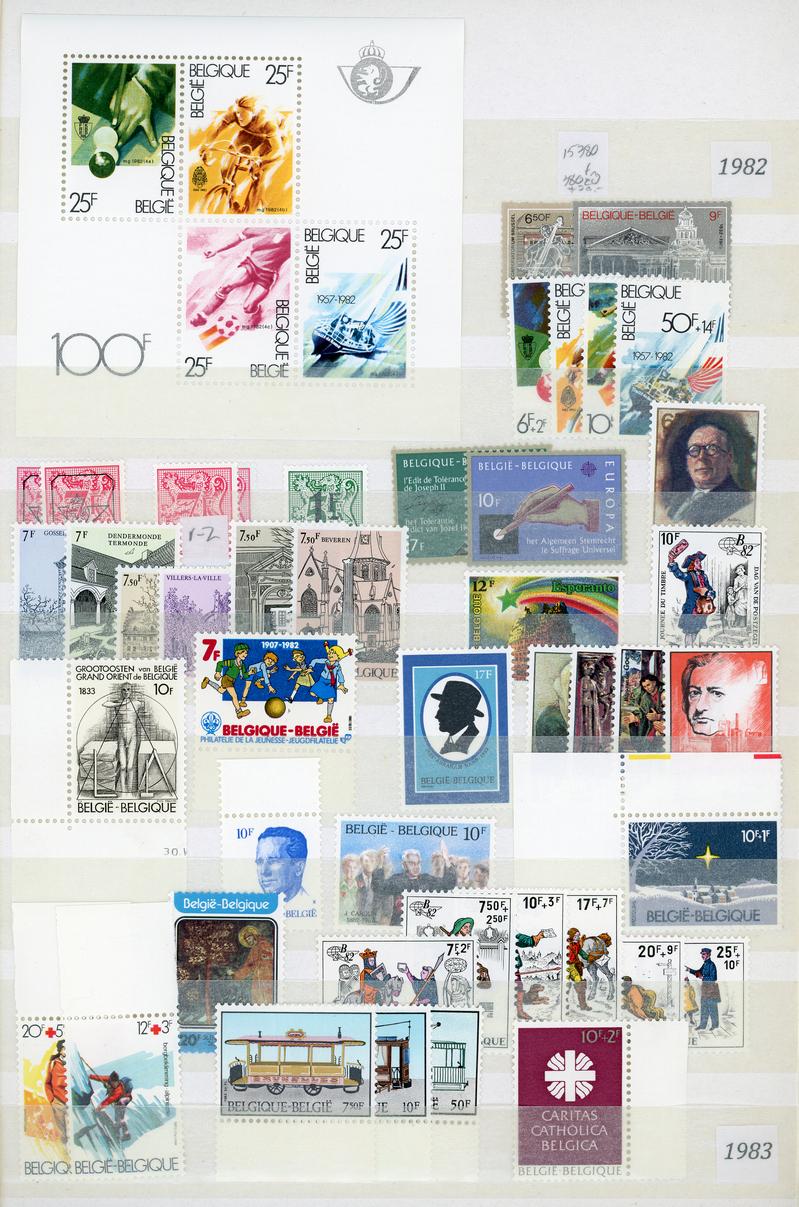 BELGIUM 1982-2000 COLLECTION STAMPS VF ** Large stockbook containing a nice and complete collection for the period of 940 stamps and 26 souvenir sheets mint never hinged (some extras not counted). Face value of 378 Euros (+-$600). Starting bid $300.00. (Image1)