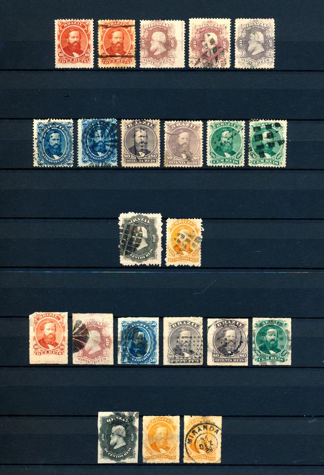 BRAZIL 1844-61 SELECTION STAMPS VG-F /O. Selection of 24 used stamps between numbers 7 and 39. The condition is mixte from poor to fine, must be checked. Scott $1600.00 CAD. (Image1)