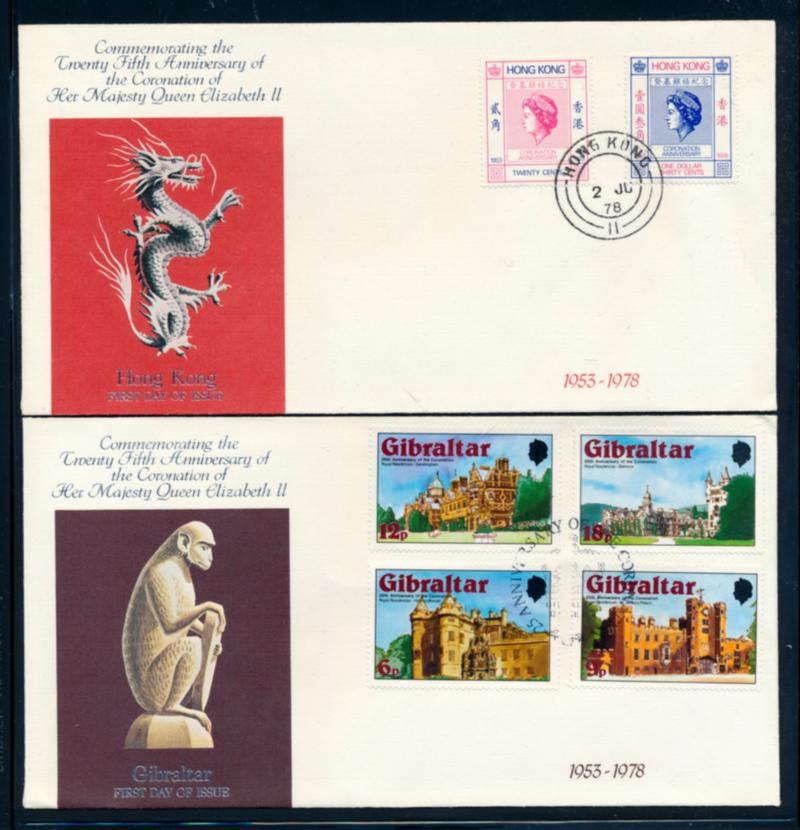 BRITISH COLONIES FDC LOT VF. Lot of 258 first day covers on the 1977 Queen Elizabeth II Silver Jubilee, the 1978 Twenty Fifth Anniversary of the Coronation of Queen Elizabeth II and the 1981 Royal Wedding of Prince Charles and Lady Diana. Starting bid $75.00. (Image1)