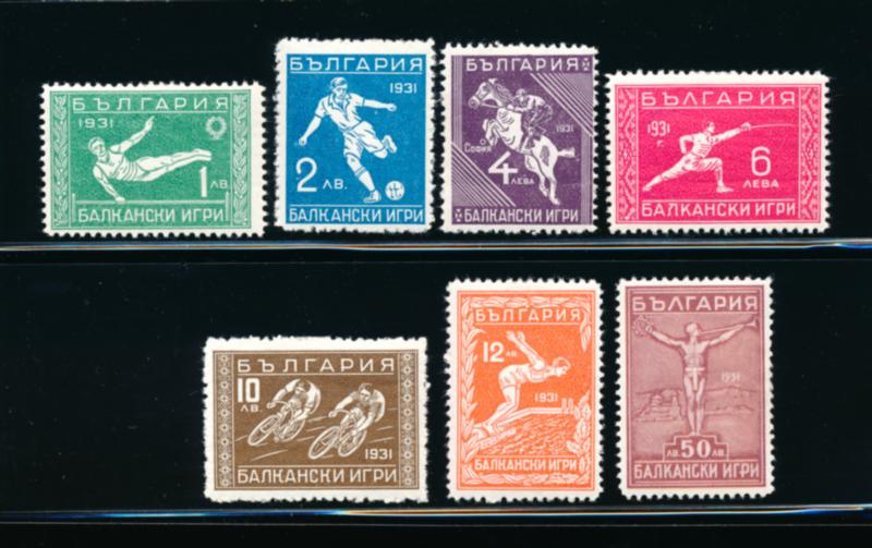 BULGARIA 1933 #244-50 STAMPS F-VF *. Balkan games issue of 1933, complete set of 7 stamps mint lightly hinged. Scott $675.00 CAD. (Image1)