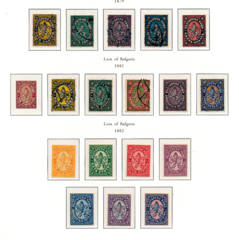 BULGARIA 1879-1956 COLLECTION STAMPS F-VF */***O. Palo hingeless album with case containing a nice collection of 1133 stamps and 4 souvenir sheets, mint and used. I noted #1-5/o, 7-11/o, 12-18**, 23-24**, 28-37**, 57-69** (without #67), 74-76*, 89-100**, 237-43**, 316-35**, 688-94**, 843a**, C1-4*, C12-14*, C19-30**, J2/o, J3*, J7-19/o, RA1-9**. Scott $3215.00 CAD. (Image1)