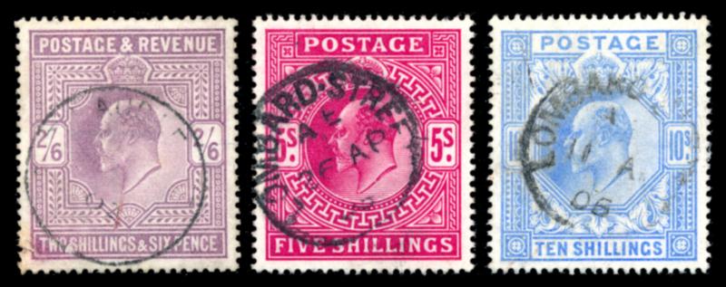 GREAT BRITAIN 1902 #139-41 STAMPS VF /O. King Edward VII issue, selection of 3 used stamps. Scott $1200.00 CAD. (Image1)