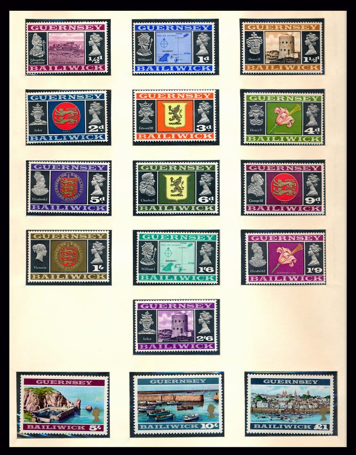GUERNSEY 1941-84 COLLECTION STAMPS VF ** Lindner hingeless album containing 349 stamps, 4 souvenir sheets and 15 booklets mint never hinged. Almost complete for the period. Starting bid $80.00. (Image1)