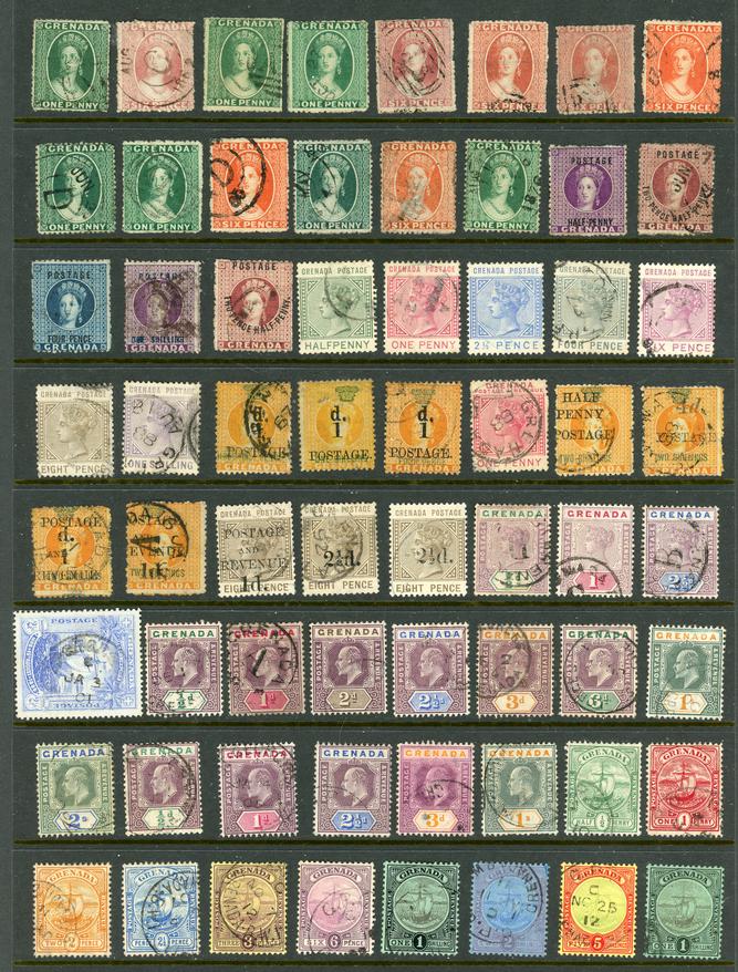 GRENADA 1861-1977 COLLECTION STAMPS F-VF */**/O. Binder containing a collection on Vario pages of 320 stamps and 10 souvenir sheets. You need to check the Queen Victoria stamps. High catalog value. Starting bid $150.00. (Image1)