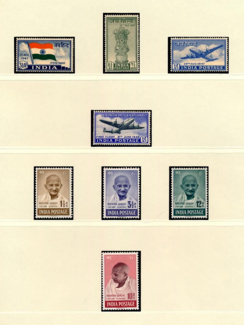 INDIA 1947-93 COLLECTION STAMPS F-VF */**- Lindner hingeless album containing a collection of 472 mint stamps (2 used). Need to be examined. I noted numbers 203-06**, 207-22*/**, 223-26*, 227-30**, 233-34**, 237-42**, 243-52**, 254-71**, 275-88**, 302-15**, 361a-66**, 405-22**, 599a**, M44-55**. Scott $2400.00 CAD. (Image1)