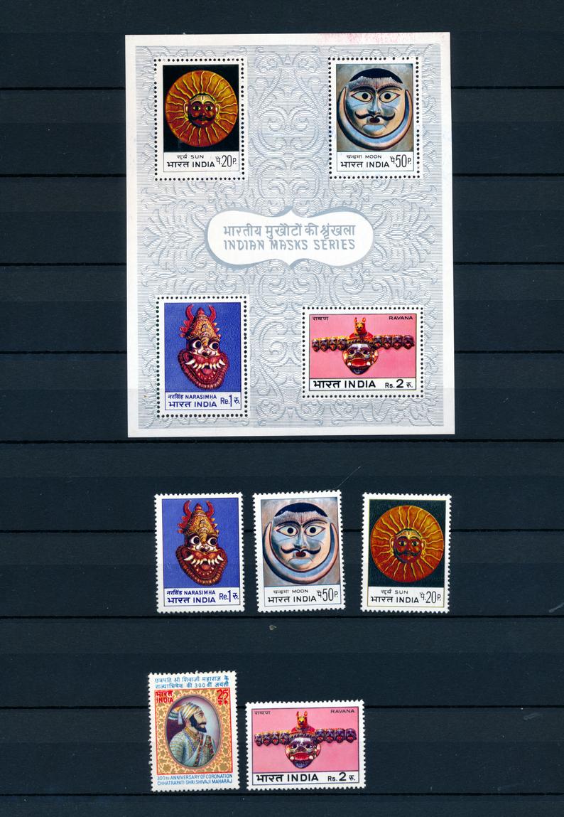 INDIA COLLECTION STAMPS F-VF */**/O. Two stockbooks containing a collection of 785 stamps and 2 souvenir sheets, mint and used. Need to be examined. Starting bid $110.00. (Image1)