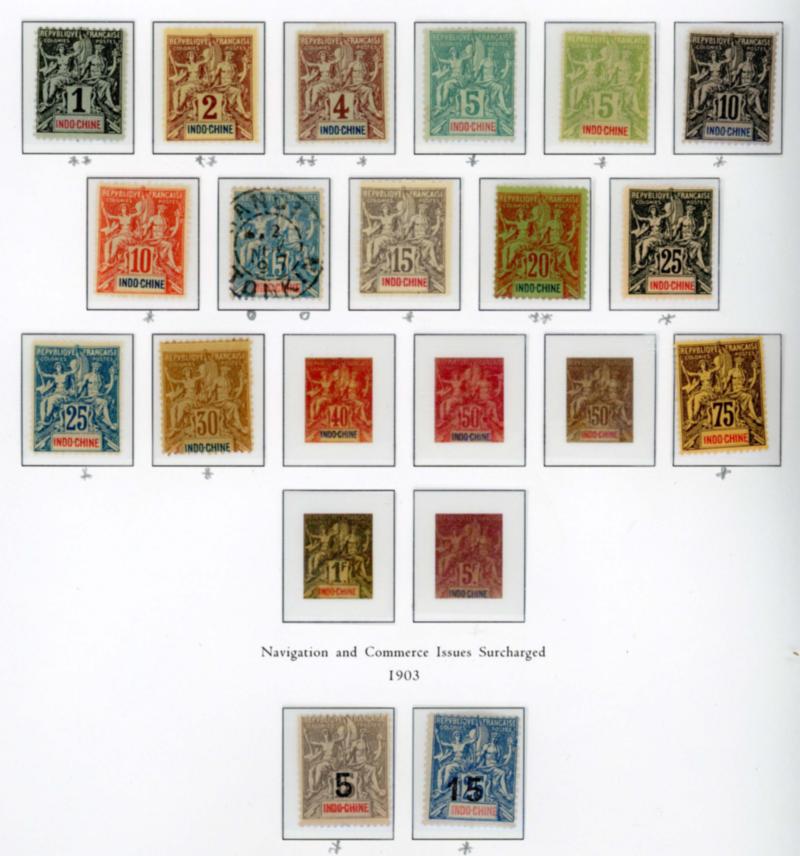 INDOCHINA 1892-1949 COLLECTION STAMPS F-VF */**/O. Collection of 336 mint and used stamps mounted on Palo album pages. I noted numbers 41-58*, 59-63*, 115-38*, 140-42*, 143/70*, 171-81**, 182-92**, 210-12/o, B14*, C18A-18O**, C27-28**, CB1*, J57/72A*. Scott $1412.00 CAD. (Image1)