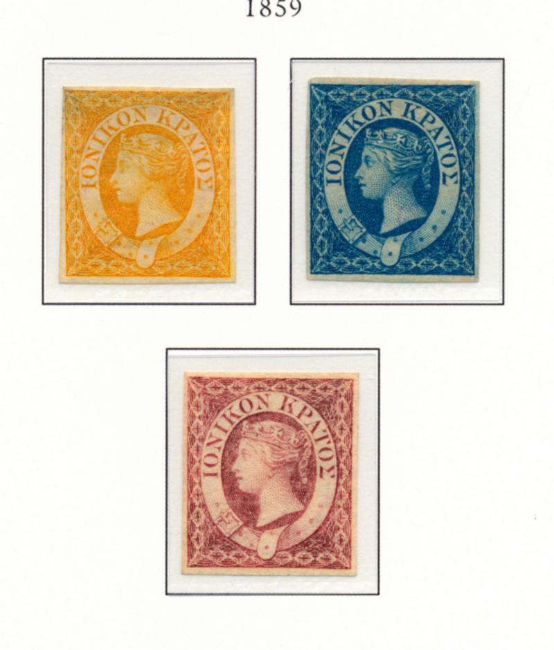 IONIAN ISLANDS 1859-1943 COLLECTION STAMPS F-VF */**. Collection of 38 mint stamps mounted on Palo album hingeless pages. I noted #1-3(*), N1-6*/**, N9-10*/**, N26*, N26a*, N27**, N27a**, NC13*, NC13a*. Need to be seen. Scott $1800.00 CAD. (Image1)
