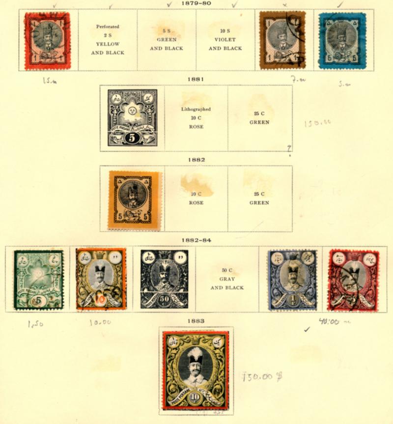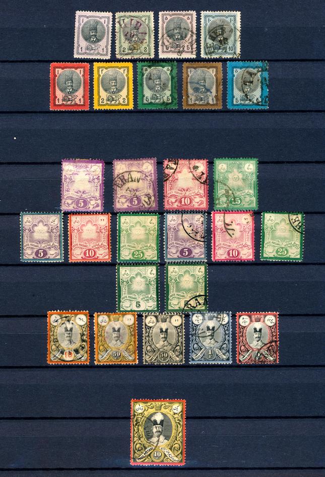 IRAN 1870-1925 COLLECTION STAMPS F-VF */O. Interesting collection of 450 stamps mint and used mounted in a Schaubek album. Need to be examined, the collection is sold as is and may contains reprints. High catalog value (US$8000) according to the owner. Starting bid $400.00. (Image1)