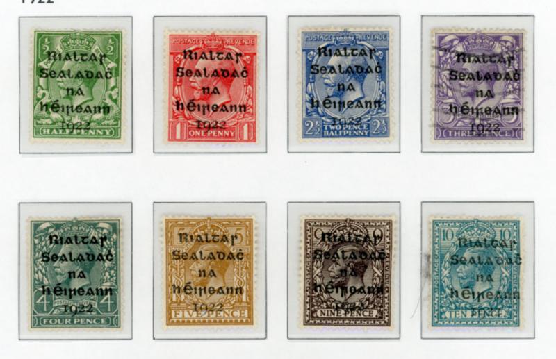 IRELAND 1922-87 COLLECTION STAMPS F-VF *-/O. Davo hingeless album with case containing a collection of 423 stamps mostly canceled. I noted numbers 1-8*/o and 65-76*/o. To be checked. Starting bid $120.00. (Image1)