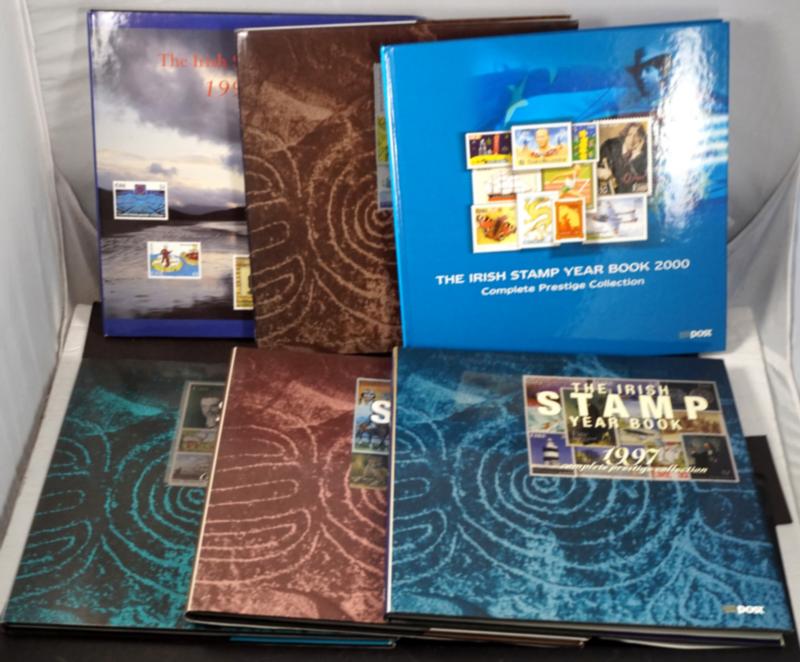 IRELAND 1990-2000 COLLECTION STAMPS VF **. Lot of 10 annual collections between 1990 and 2000 mounted in nice, illustrated books. The years are 1990-91 to 1995-96 plus 1997 to 2000. Stamps and souvenir sheets are mint never hinged. Starting b. Stamps and souvenir sheets are mint never hinged. Starting bid $130.00. (Image1)
