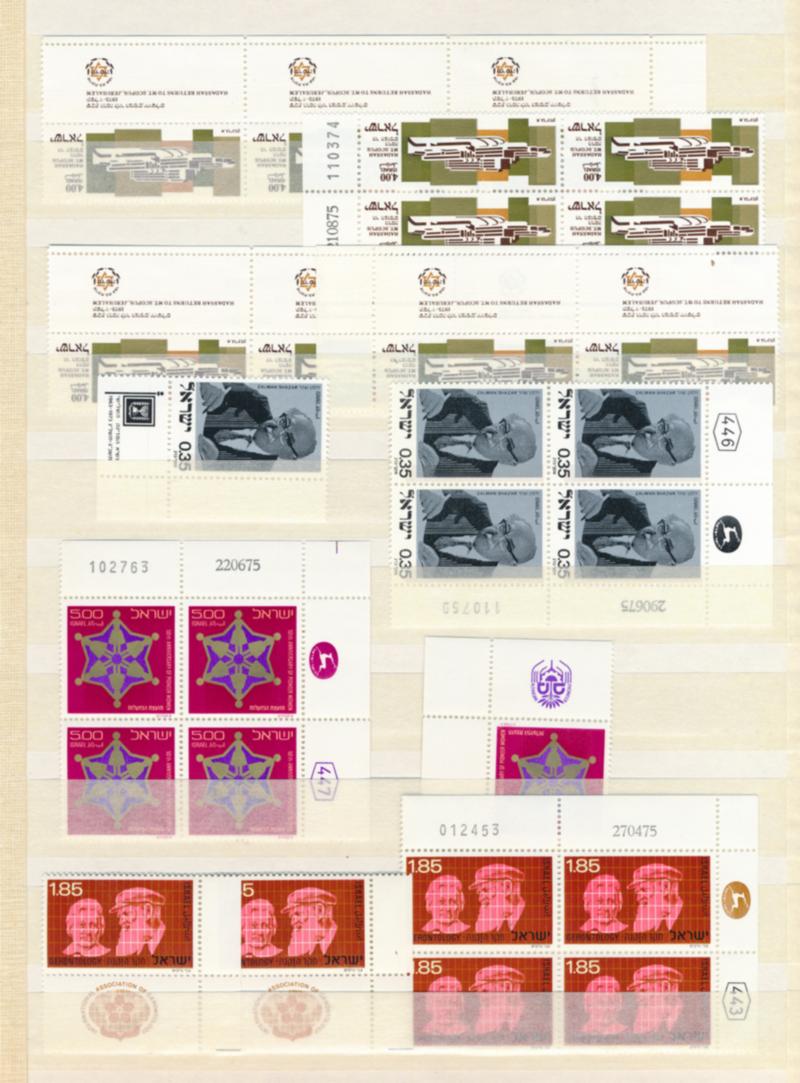 ISRAEL ACCUMULATION STAMPS VF **. 2 Stockbooks containing 1897 mint never hinged stamps in blocks, strips and single. Nice lot. Starting price $60.00. (Image1)