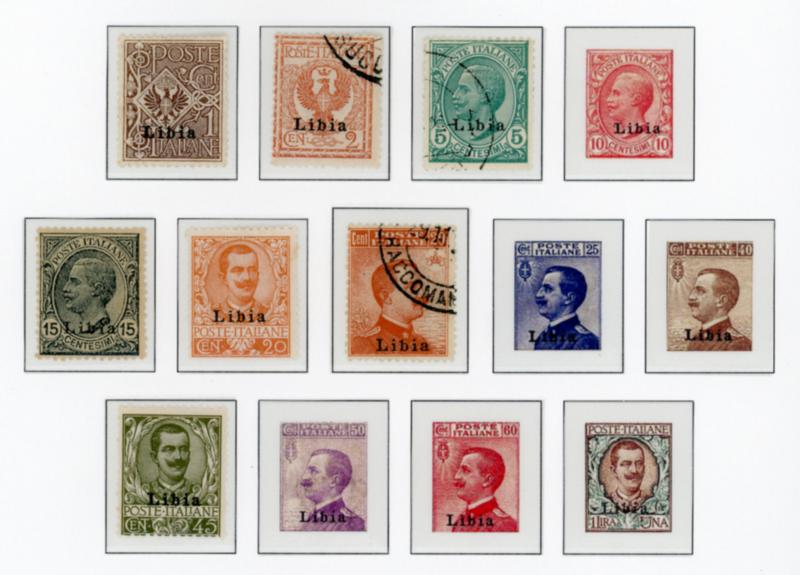 ITALIAN LIBYA 1912-41 COLLECTION STAMPS F-VF */**. Palau album hingeless pages containing a collection of 174 mint stamps (except for 2). Need to be examined. I noted numbers 20-31*, 64A-64G*, 95-101**, B1-4*, B5-10*, B11-16*, B17-22*, B23-29*, B30-37*, B38-47*, B48-54*, C4-7*, C8-13*, C14-18*, C19-24**, CE1-2*, E3-6*, E7-8*, E9-10*. Scott $4100.00 CAD. (Image1)