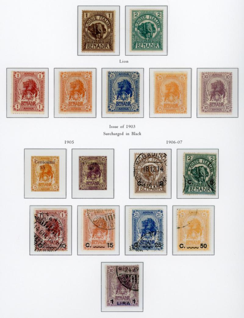 ITALIAN SOMALILAND 1912 #138-55 STAMPS F-VF *. Complete set of 18 stamps mint hinged. Rare set. Scott $1700.00 CAD. (Image1)