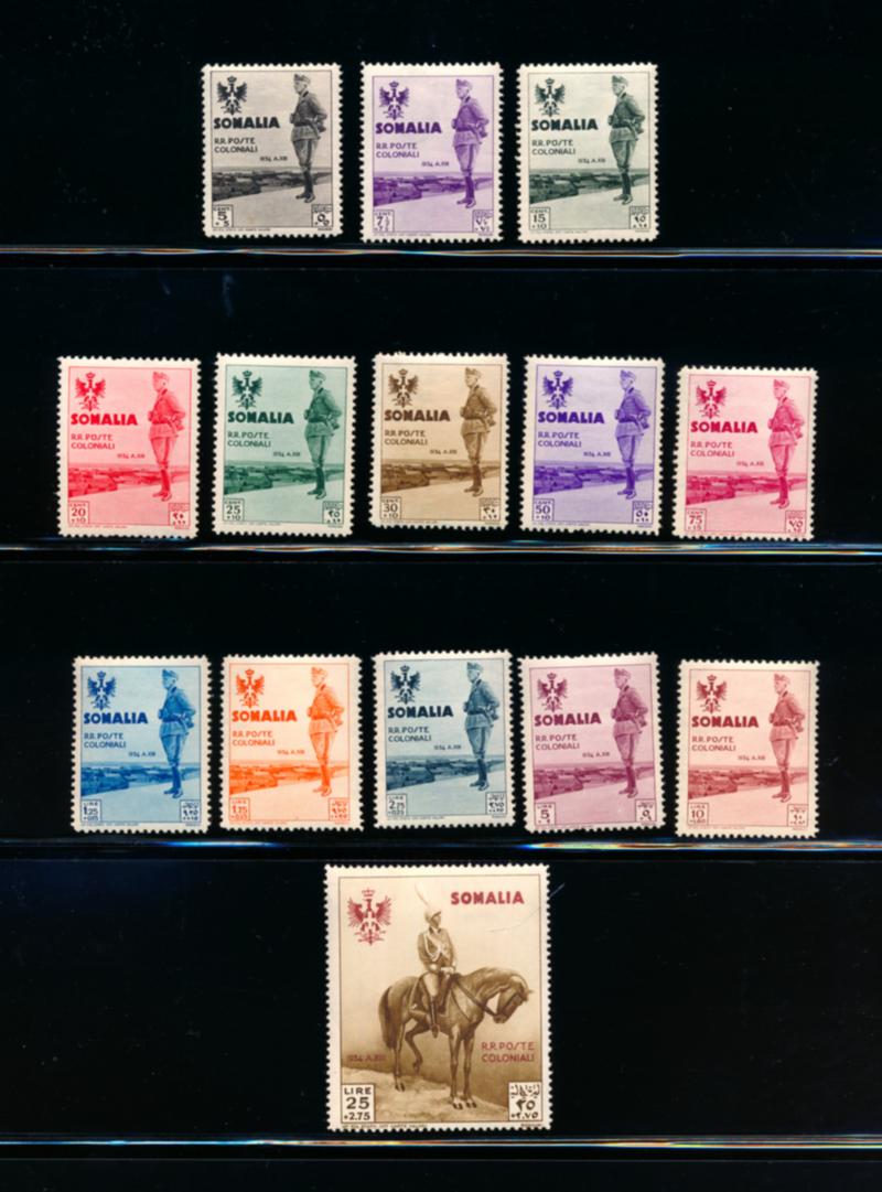 ITALIAN SOMALILAND 1935 #B38-51 STAMPS VF **. Visit of King Victor Emmanuel III, complete set of 14 stamps mint never hinged. Scott $1100.00 CAD. (Image1)