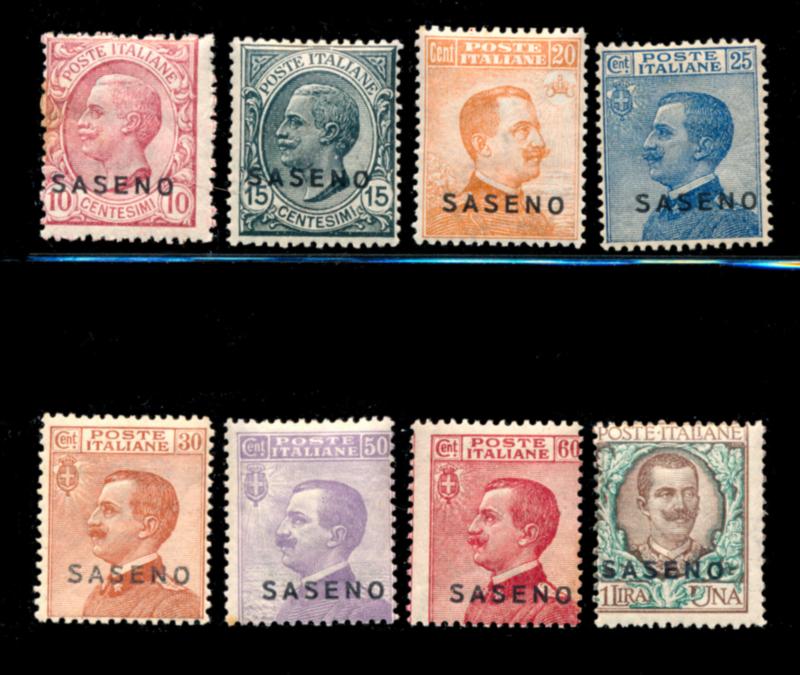 ITALY 1923 SASENO #1-8 STAMPS F **. Complete set of 8 stamps mint never hinged. Scott $810.00 CAD. (Image1)