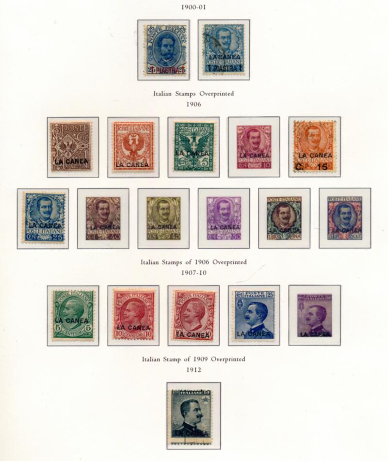 ITALY OFFICES ABROAD 1900-1923 COLLECTION STAMPS F-VF */O. Palau hingeless album containing a collection of 256 stamps mint and used. I noted: Offices in Benghazi #1/o, Turkish General issues 1-5*, 13-15*, 23*, 26-33*, Durazzo #1-6*, Jerusalem #1-6*, Scutari 1-6*, Valona #1-7* + 10*, Aegean islands: General issue #1-2*, 19-30*, C14**, C20-25*, Calchi #1/9*, 18-24*, Caso #12-16*, 17-26*, Coo #2*, Lisso #1*, 7*, Rhodes 1/12*, 55-63**, 64-72*/**, J1-9**. Scott $4090.00 CAD. (Image1)