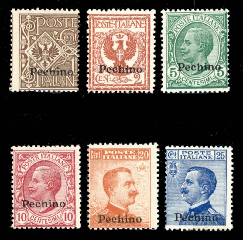 ITALY OFFICES IN CHINA 1917-18 SELECTION STAMPS F (*). Offices in China, Italian stamps overprinted "Pechino". Selection of 6 mint stamps without gum, numbers are: 12 to 17. Scott $580.00 CAD. (Image1)