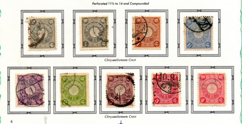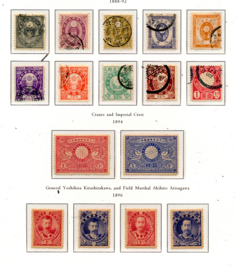 JAPAN 1900-1940 SELECTION STAMPS F /O. 3 souvenir cards containing 194 cancelled stamps. Must be examined, a very interesting lot. Starting bid $100.00. (Image1)