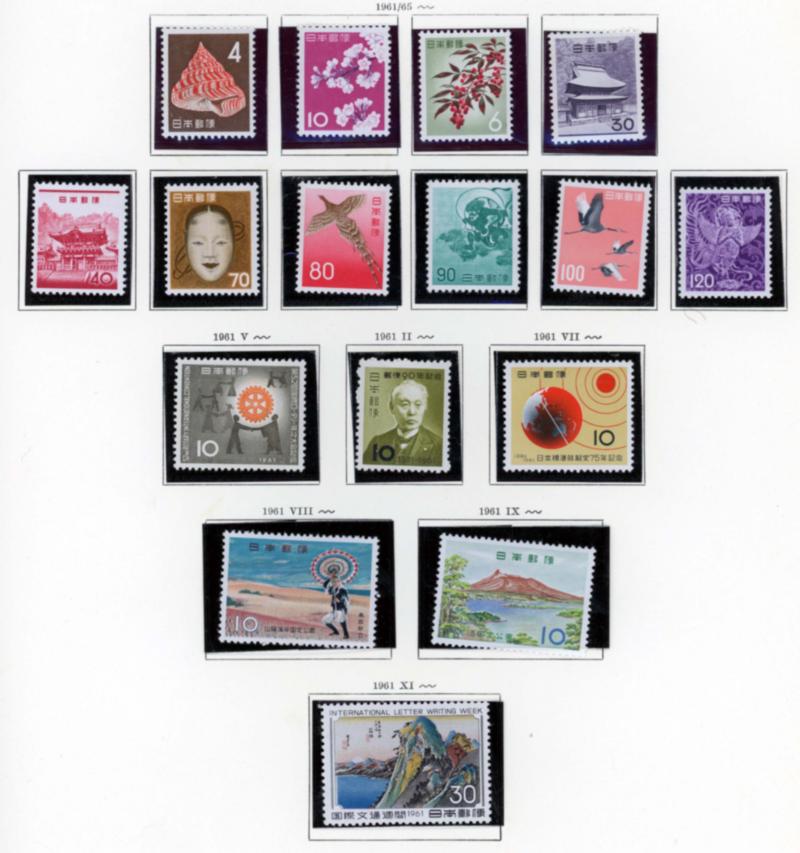 JAPAN 1960-1980 COLLECTION STAMPS VF **. Schaubek album containing a nice collection of 640 stamps and souvenir sheets all mint never hinged. Starting bid $120.00. (Image1)