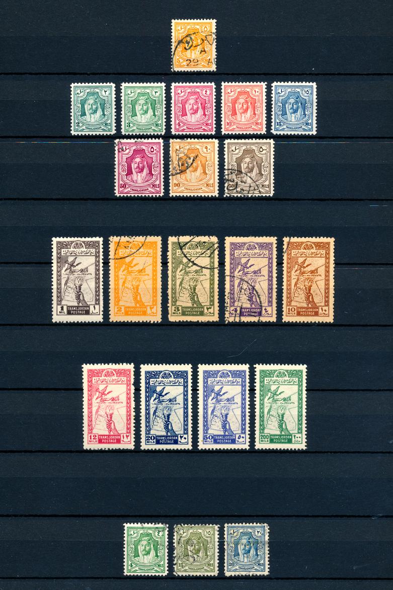 JORDAN 1942-83 COLLECTION STAMPS F-VF */**/O. Stockbook containing a collection of 411 stamps and 8 souvenir sheets mint and used. To be examined. Starting bid $80.00. (Image1)