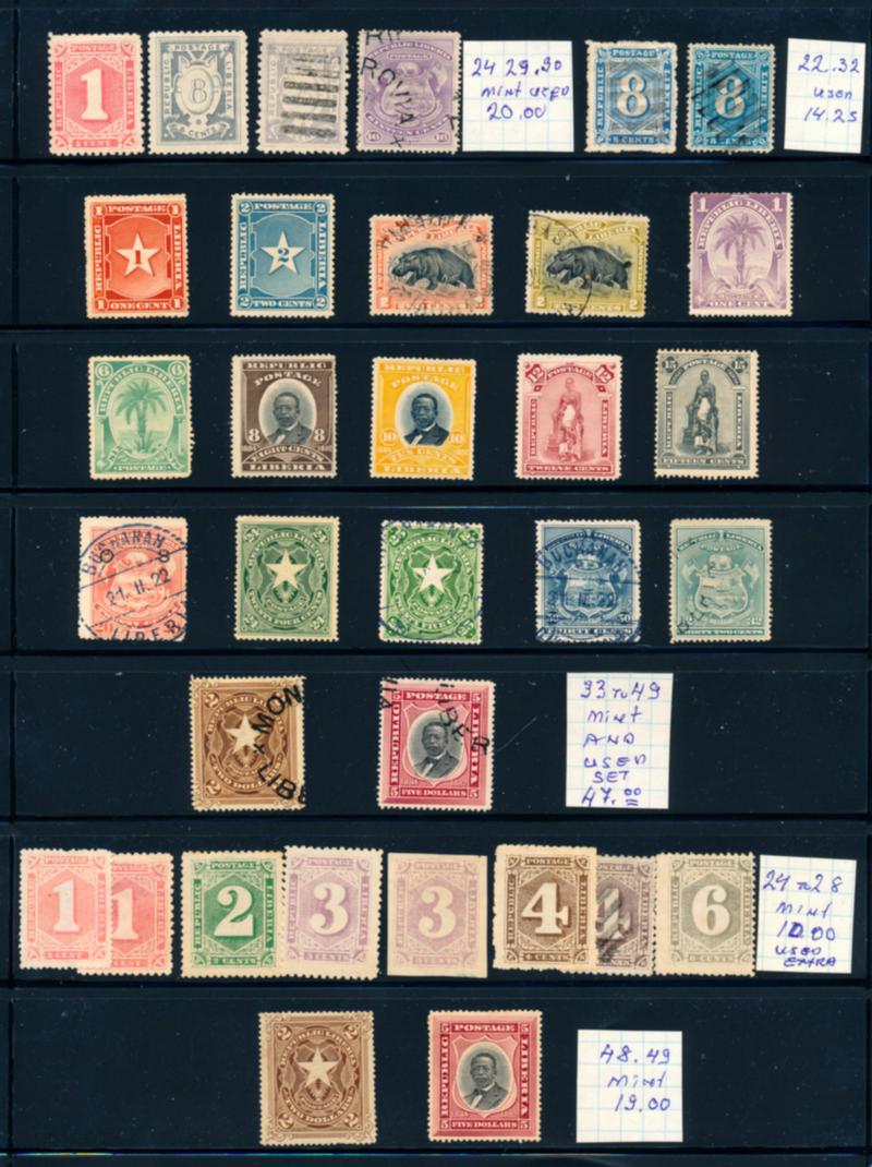 LIBERIA LOT STAMPS VG-F /O. Binder containing 326 mint and used stamps. Condition is generally fine. Need to be checked. Owners catalog value is US$1200.00 Starting bid $60.00. (Image1)
