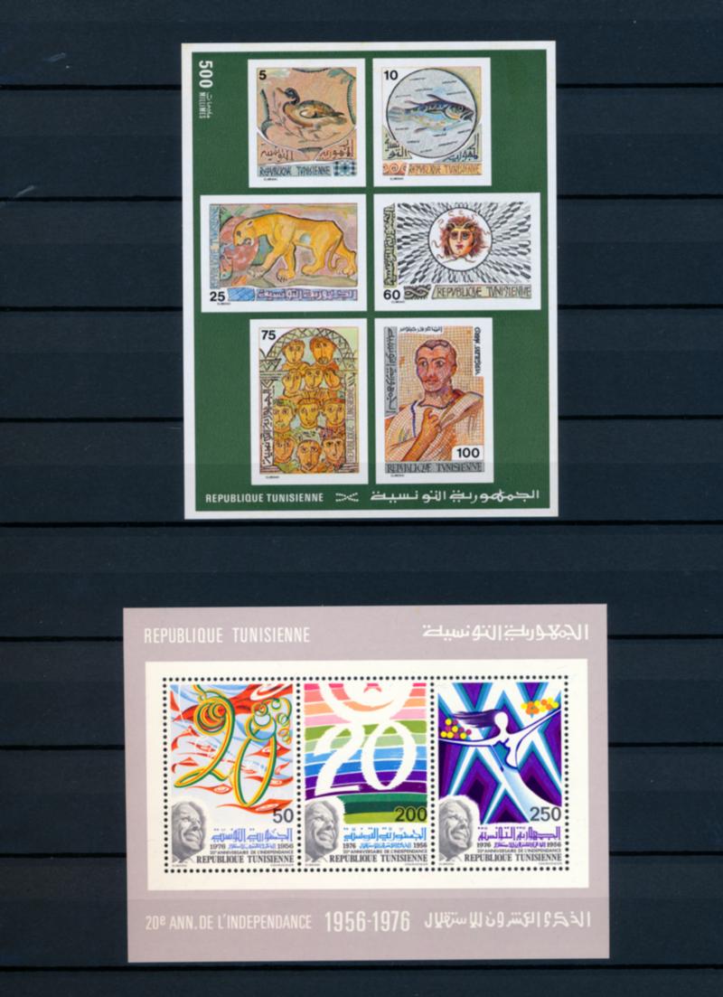 LIBYA & TUNISIA 1951-78 COLLECTIONS STAMPS F-VF */**. Three stockbooks containing a collection Tunisia of 419 stamps and 2 souvenir sheets and a collection of Libya of 282 stamps all mint. I noted for Libya numbers 122-34**, 135-46**, 153-67**, 175-76* and 504-06*. Starting bid $250.00. (Image1)
