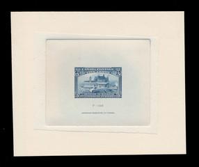 5c Québec Tercentenary Large Die Proof in Colour of Issue, on India paper (75 x 63 mm) die sunk on card (125 x 105 mm), with "F-193" die number and "American Bank Note Co. Ottawa" inscriptions below the stamp image, very fine and scarce. (Image)