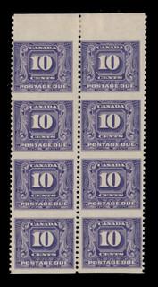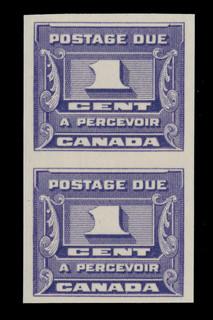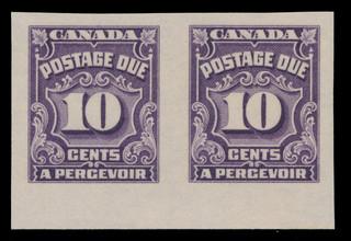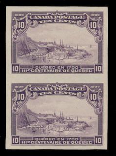 1908 10c Violet Québec Tercentenary Imperforate, a mint hinged vertical pair, with large and even margins, extremely fine. (Image)