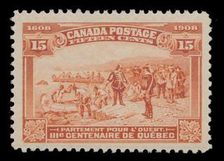 1908 15c Orange Québec Tercentenary, mint never hinged, with four large and balanced margins, quite fresh and extremely fine.
