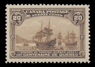 1908 20c Brown Québec Tercentenary, mint never hinged, well centered with large margins, a very fresh and very fine stamp. (Image)