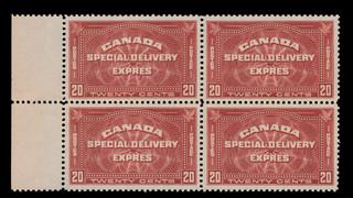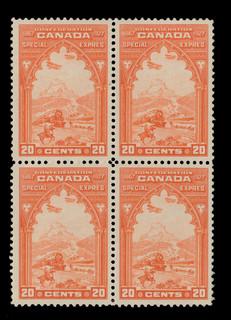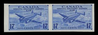 Two Different 17c Special Delivery Large Die Proofs in Bright Ultramarine, with CE3 (Exprês) and CE4 (corrected Exprès) spellings, both on India paper (113 x 89 mm) sunk-in on card (229 x 153 mm), with "X-G-817" die number and "Canadian Bank Note Company, Limited" inscriptions below design. Extremely fine and a rare set.