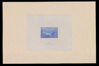6c Air Mail Plate Proof in Blue, a vertical pair on card-mounted India paper, very fine. (Image)