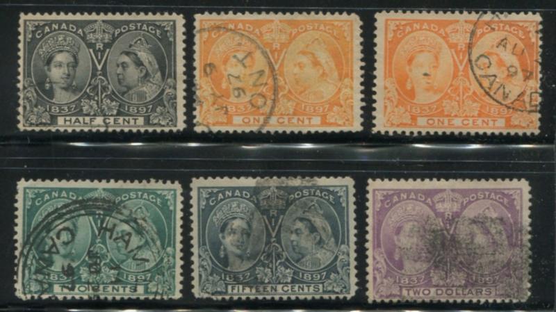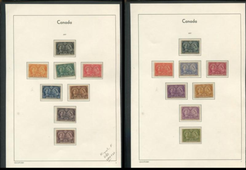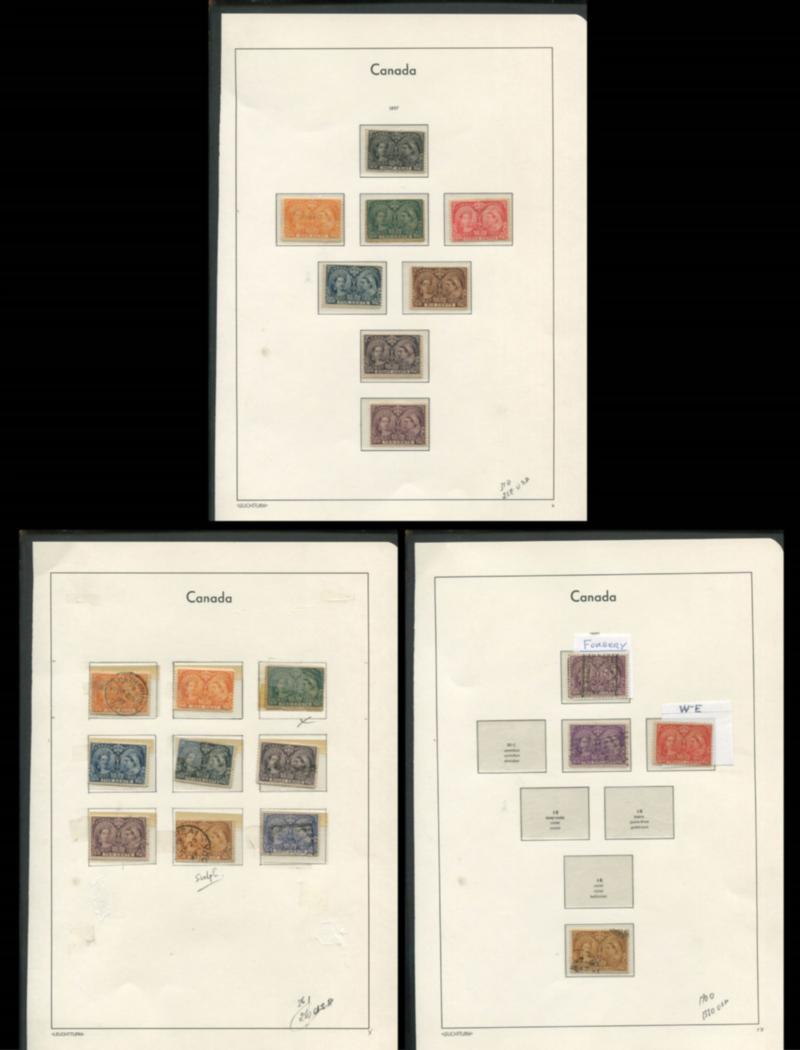 Canada Jubilee Issue, 1/2c - 50c, $2 and $3, used and MH, Unitrade Cat. $2570.00, USD $1800.00, noted a $2 forgery with roller cancel, 20c W-E variety, $2 light roller cancel, $3 cds on corner, a nice collection of this popular issue (Image)