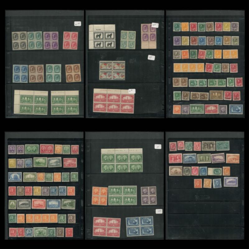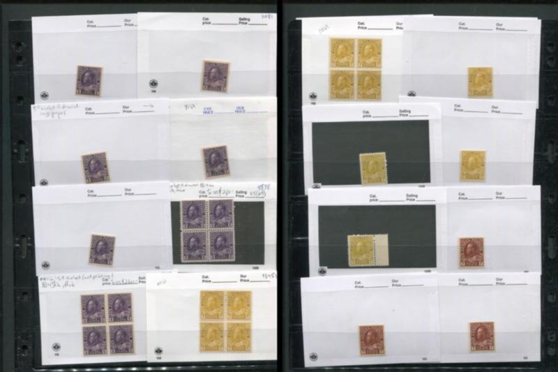 Canada Admiral collection 104/120, no 105, 111, 119, 1911-1925, f-vf, vf, */**, many blocks and many shade varieties, with duplicates, Unitrade Cat. $5200.00, a very useful collection of this popular area. (Image)