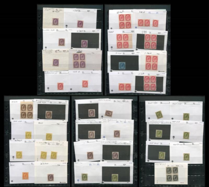 Canada 1898 - 1902, #76 / #84, a MH / MNH selection in 102's, in singles and blocks of four, Unitrade value $5585 CND, ($4076 USD), appears f-vf (Image)