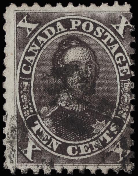 1859, Prince Albert, 10¢ black brown (Scott 16), a completely sound example with rich, unmistakable color and all perfs intact; average centering, about Fine for this rare stamp. Scott $6,000. (Image)